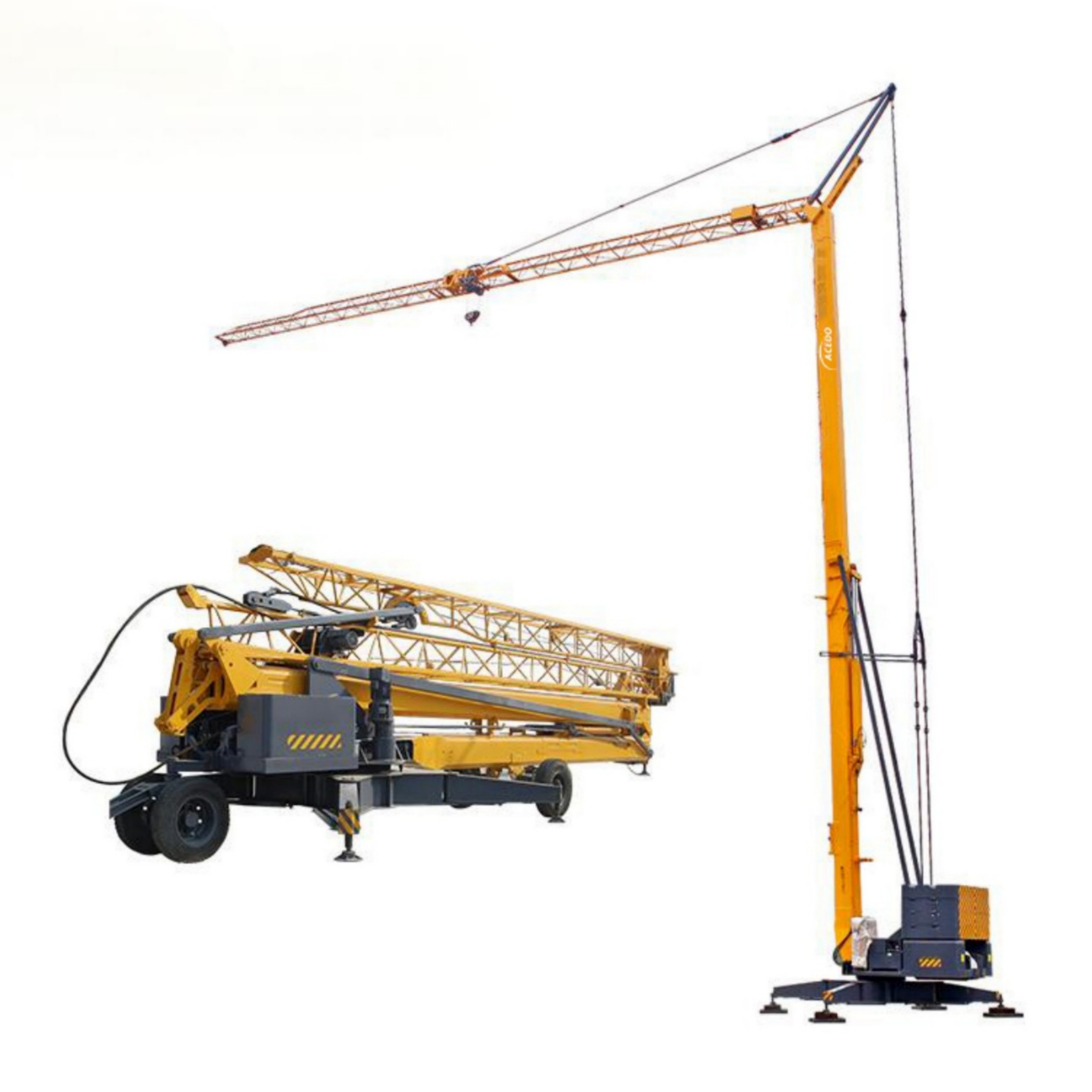 Self-mounting tower cranes with tires: an efficient and convenient lifting pioneerInnovative design, efficient installationSelf-mounting tower cranes with tires are innovative. The tire chassis makes it maneuverable and can turn quickly, eliminating complex transportation and disassembly and saving a lot of time. Modular design, simple and firm connection of components, such as the boom and tower body with quick plug and pull pin or high-strength bolt connection, easy installation, compared with the traditional crane, greatly shorten the installation cycle, meet the needs of fast-paced engineering construction. Excellent performance, stable operationThis kind of crane has strong lifting capacity, and different models can lift several tons to dozens of tons of heavy objects, meeting various construction lifting requirements. The lifting arm can flexibly adjust the working radius. The rotary system is accurate and can cope with small Spaces or large construction sites. Strong legs with…