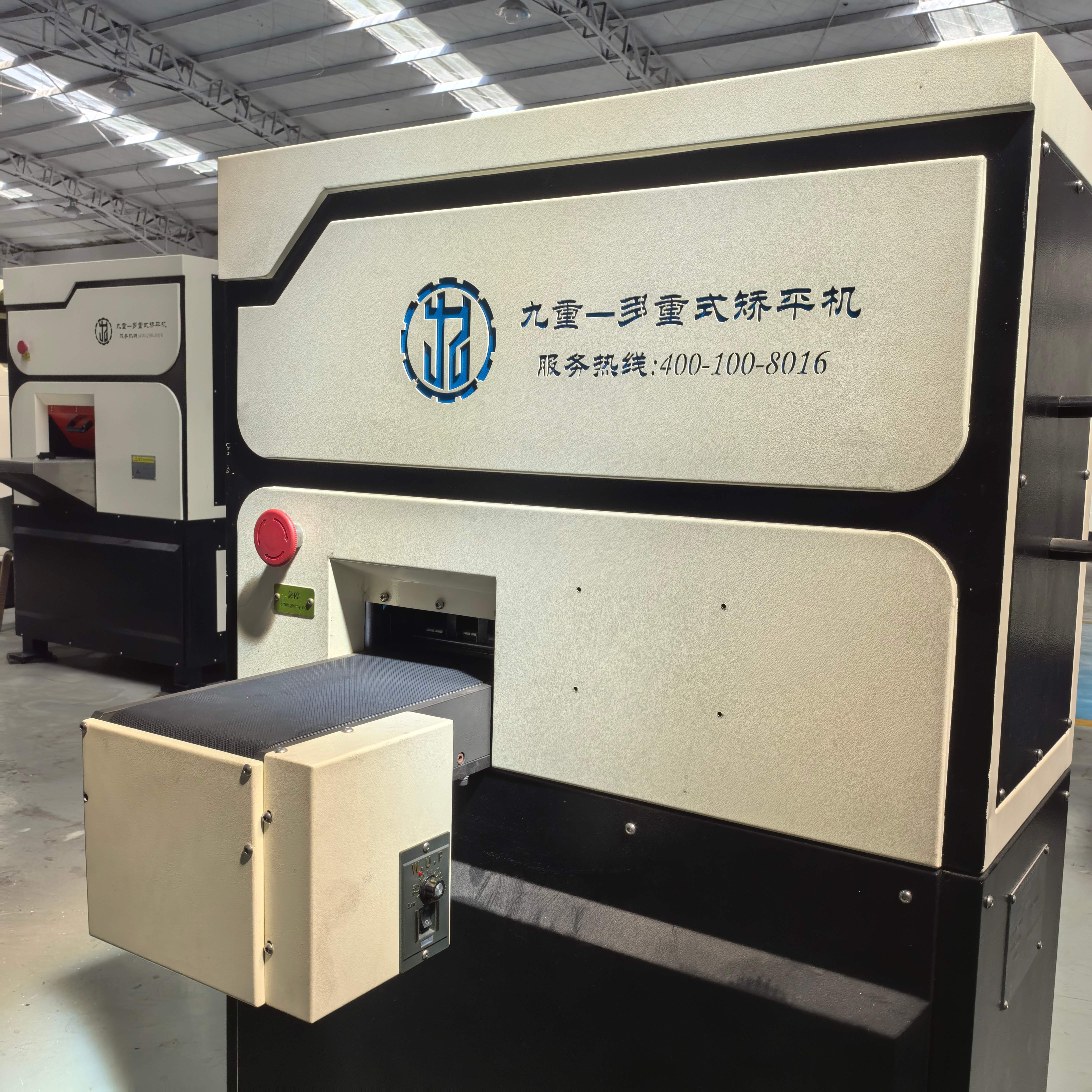 JZ-60S(T:1.0-6.0mm) Specialized in Metal Plate Leveling Machines with 20+ Years of Technical Expertise Developed through dedicated R&D, JIUZH's leveling machine applies the "Bauschinger Effect" ,sheet metal was repeatedly twisted to make metal fiber gradually consistent, eliminate internal stress, restore and improve the flatness,the precision can reach micron level.The stagger arranged support rollers ensure leveling rollers bearing heavy pressure in balance without bending deformation, keeping the whole equipment have enough rigidity. Upper and lower support roller column & upper and lower leveling roller group making up four-high or six-high layers structure, ensuring stable, efficient and high-quality leveling performance. Precise deformation prevention for thin materials: Suitable for 1-6mm thin metal sheets (thin steel plates, thin aluminum plates, etc.), using small roll diameter + servo micro-pressure control, precisely eliminating rolling warping and cutting stress…