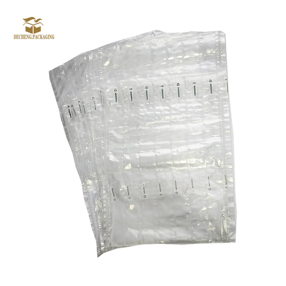 Decheng Air Column Bag For Wine Bottle Quick Detail: 1. Different names of products: Air column bags Wine bottle air column bag Air column bubble wrap for wine bottle 2. Main uses: Air columnn bags are mainly used in electronic product industry,cosmetics industry,craft packaging,precision instruments,logistics transportation,daily consumer goods,in the field of industrial electronics,E-commerce and fresh food platforms,ect. Description Place of Origin: Jiangyin, Jiangsu, China Brand Name: Decheng Model Number: L73824 Certification: ISO 9001, SGS, REACH Minimum Order Quantity: 1000 pieces Price: / Packaging Details: pieces/rolls customizable Delivery Time: 7-15days Payment Terms: T/T, L/C Supply Ability: 1000,000 pieces per month Company Description: Jiangyin Decheng Packaging Materials Co., Ltd., located in the economically vibrant Jiangyin City, Jiangsu Province, is a professional flexible packaging company specializing in R&D, slitting, and ba…