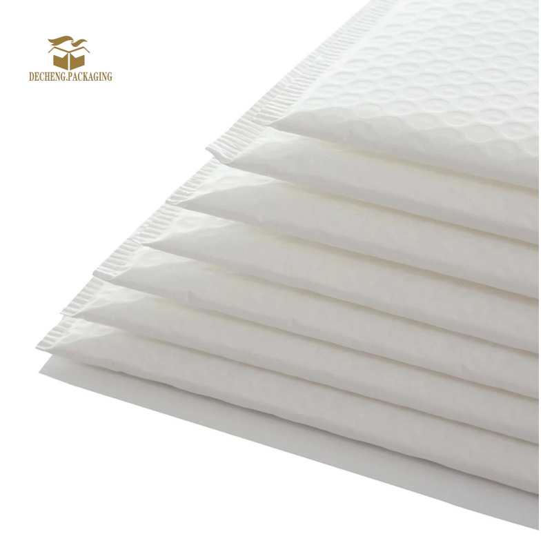Decheng Pearl Packaging Envelope Bags Quick Detail: 1. Different names of products: White Bubble Mailer Bags Bubble Mailer Bags Pearl Bubble Bag Mailers 2. Main uses: Envelope bubble bags have a wide range of applications and can be used for packaging e-commerce products and small postal packages, as well as protective packaging for sellers of jewelry, electronic products, cosmetics, audio CDs, digital products, and other websites. Description Place of Origin: Jiangyin, Jiangsu, China Brand Name: Decheng Model Number: PPEB Certification: ISO 9001, SGS, REACH Minimum Order Quantity: 1000 pieces Price: / Packaging Details: pieces customizable Delivery Time: 7-15days Payment Terms: T/T, L/C Supply Ability: 500,000 pieces per month Company Description: Jiangyin Decheng Packaging Materials Co., Ltd., located in the economically vibrant Jiangyin City, Jiangsu Province, is a professional flexible packaging company specializing in R&D, slitting, and ba…