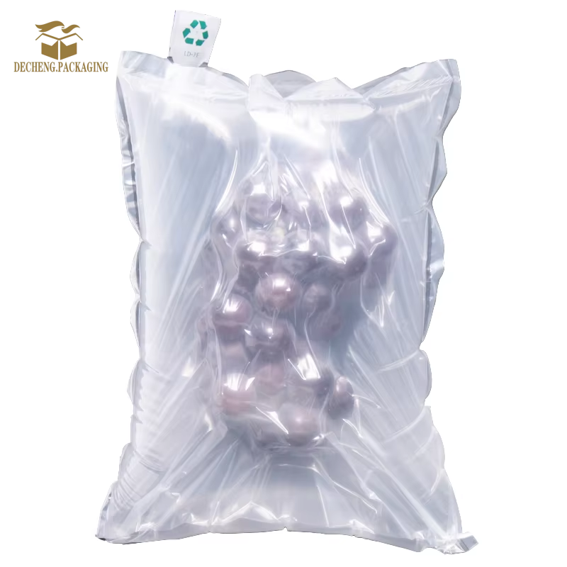 Decheng Fruit AIir Cushion Bags Quick Detail: 1. Different names of products: Custom Inflatable Packaging PE Nylon Air Cushion Bag-In-Bag Air Vent Fruit Transportation 2. Main uses: Air bubble bags have the characteristic of being reusable and are one of the sustainable packaging solutions.The air bubble bag in plastic bags plays an important role in packaging and transportation, ensuring the safety and integrity of products during logistics and transportation by providing effective protection. Description Place of Origin: Jiangyin, Jiangsu, China Brand Name: Decheng Model Number: FACB Certification: ISO 9001, SGS, REACH Minimum Order Quantity: 1000 pieces Price: / Packaging Details: pieces/rolls customizable Delivery Time: 7-15days Payment Terms: T/T, L/C Supply Ability: 1000,000 pieces per month Company Description: Jiangyin Decheng Packaging Materials Co., Ltd., located in the economically vibrant Jiangyin City, Jiangsu Province, is a profession…