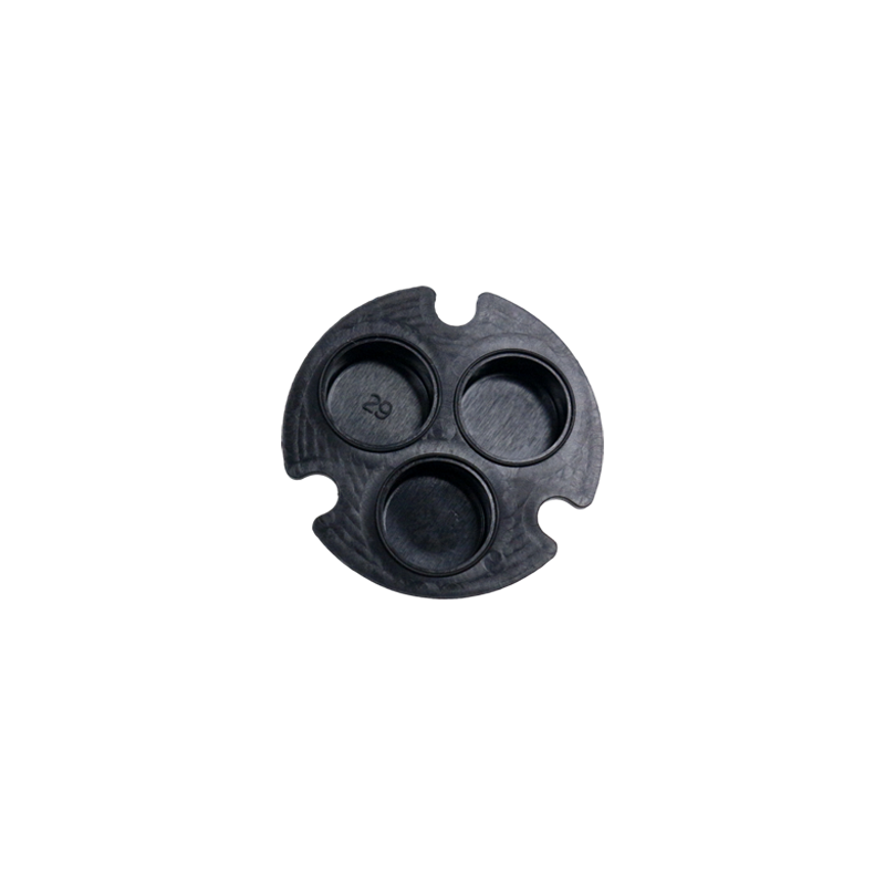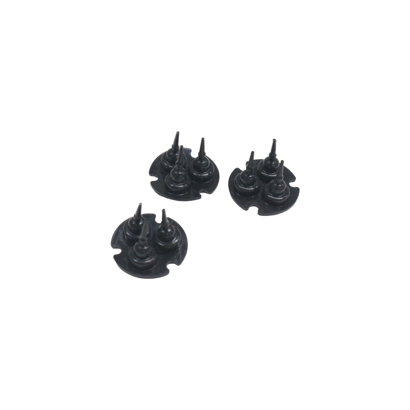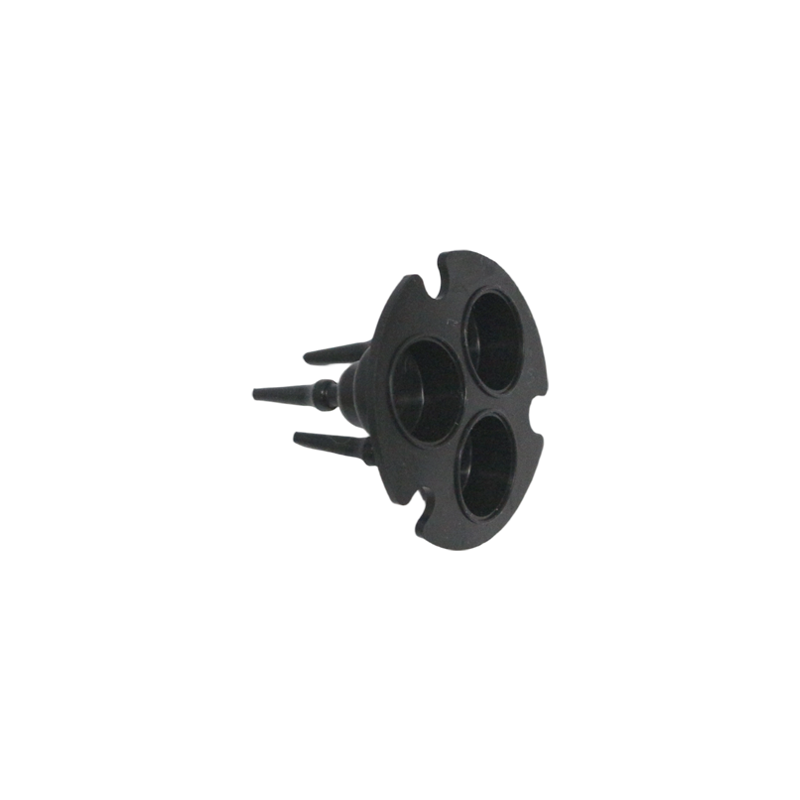 This is a 3-port piston body for fluid control equipment in pump-valve systems, a core component of Precision Piston Assemblies and Multi-Port Piston Units designed for multi-channel fluid management. It works in tandem with Sealed Fluid Direction Control Valves and Sealed Fluid Transfer Pumps to ensure accurate fluid distribution, featuring an overall disc shape with irregular notches on the edge—these notches facilitate installation positioning and adaptation to other components. The piston body is equipped with three distinct holes arranged in a regular pattern; each hole has a spire-like raised structure, with a needle-shaped handle on top of the protrusion to enable better insertion into corresponding interfaces or pipelines. Made of rubber, it has a smooth surface without obvious textures or decorations, which helps reduce fluid resistance during flow and prevents impurity adhesion. Its structural design aligns with the functional requirements of Pistons and Hydraulic Piston Comp…