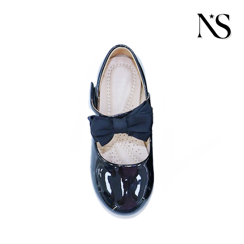 Introducing these exquisite black Mary Jane shoes, crafted specifically for children. The shoes showcase a timeless round - toe design, which not only imparts a classic aesthetic but also ensures ample space for little toes to wiggle and move comfortably. The upper is constructed from shiny patent leather, bestowing upon the shoes a sleek and polished appearance that catches the light beautifully. Adorning the instep is a large, elegant black bow, adding a touch of whimsy and charm that is sure to delight children. A single strap with a convenient hook - and - loop fastener crosses the instep, providing a secure fit while being incredibly easy for kids to fasten and unfasten on their own. The brown sole is both durable and flexible, offering excellent support and traction to accommodate growing feet. Inside the shoes, breathable perforations are present, working to keep feet dry and comfortable, even during the most active play sessions. Mary Jane shoes have long been synony…