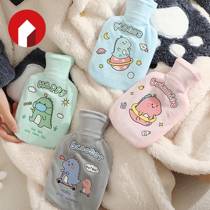 This dinosaur - patterned cartoon hot water bag is a delightful winter essential that combines cuteness with practicality. It features a high - density rubber inner liner — safe, durable, and highly effective at preventing hot water leakage, ensuring worry - free use. The detachable cloth cover is not only soft and skin - friendly (feeling like a cozy plush toy against your skin) but also easy to clean. What’s more, the cover showcases a variety of adorable dinosaur designs: there’s a little dinosaur exploring space on a pastel blue bag, a green dinosaur enjoying outdoor fun with “Happy” lettering, a pink dinosaur learning to swim with a float ring, and a blue dinosaur riding a scooter with a tiny companion — each pattern is vivid and charming, adding a playful touch to cold days. Available in two sizes to meet different needs: the 1000ml large size is perfect for long - term heating at home, whether you’re warming your hands while reading, keeping your feet toasty in bed, or soothi…