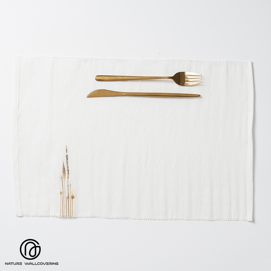 LM 003 Linen placemats are made from natural flax plant materials and crafted through a combination of handcrafting techniques and artistic hand-painting. The overall texture is pure white linen. Hand-painted plant patterns are dotted in the corners, as if the grass stalk elements from the fields have been artistically brought onto the placemat. The fine texture of the white linen is hand-combed, and the hand-painted colors of the plant patterns are natural and layered. Every stroke demonstrates the artisan's precise capture of natural aesthetics. Handcrafted items make each placemat's hand-painted plant design unique. The purity of white linen and the naturalness of the plant patterns create a visual dialogue. The white ground plant-patterned placemats are suitable for dining Spaces that pursue natural aesthetics, such as the tables in Japanese restaurants. They can bring a serene and elegant natural atmosphere to the dining environment, allowing diners to experience the natural aest…