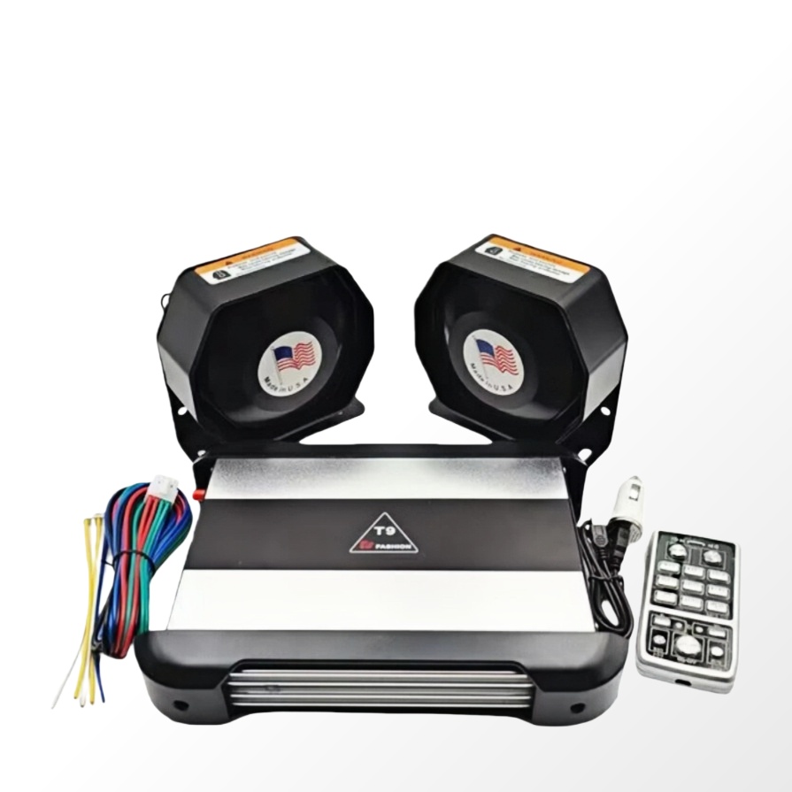 T9(600W)MP3 Car Alarm is a high-power modified warning system, integrating 600W ultra horn, wireless speaker and MP3 function, compatible with 12V vehicle power supply. As a professional Car alarm unit, it is equipped with ultra horns and mounted siren, with strong sound pressure and penetration. Combined with multi tone whistle, it covers exclusive tones for police, fire fighting and road opening, which can be flexibly switched according to scenarios. The MP3 function supports custom audio, expanding the choice of warning sounds to meet personalized needs. The kit adopts a wireless connection design, breaking away from wiring constraints, with convenient installation and compatibility with various vehicle modifications; the compact structure can be flexibly installed on the roof, grille and other positions, and the 12V voltage ensures stable operation. Whether it is urban road opening and evacuation, fire emergency rescue or police patrol warning, its high-power performance and rich…