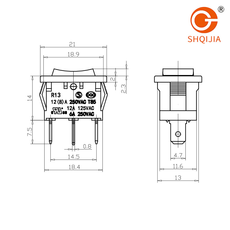 The White Black Boat-Type Switch R13-132 belongs to the R13-1 series, a standard small rocker switch, also known as boat-type switch or wave-shaped switch. It features a white rocker with clear "I" and "O" markings on a black base, enabling easy on-off operation. This switch comes in two options: the ordinary structure with a protective cover for dustproof and waterproof purposes, and the internal dustproof structure. After installing the protective cover, it can achieve dustproof and waterproof functions, making it suitable for use in various environments. It has a wide range of applications, suitable for small electric tools such as mold electric grinders, electric nail guns, hand sanding machines, laser devices, etc., as well as various household appliances and office equipment. In terms of safety certification, this product is certified with UL, S, CE, and CQC. The UL certification technical parameters are 12 (8) A 125/250VAC T125 5E4, 12A 125/250VAC T125 5E4, 6A 250VAC T85 1E4…