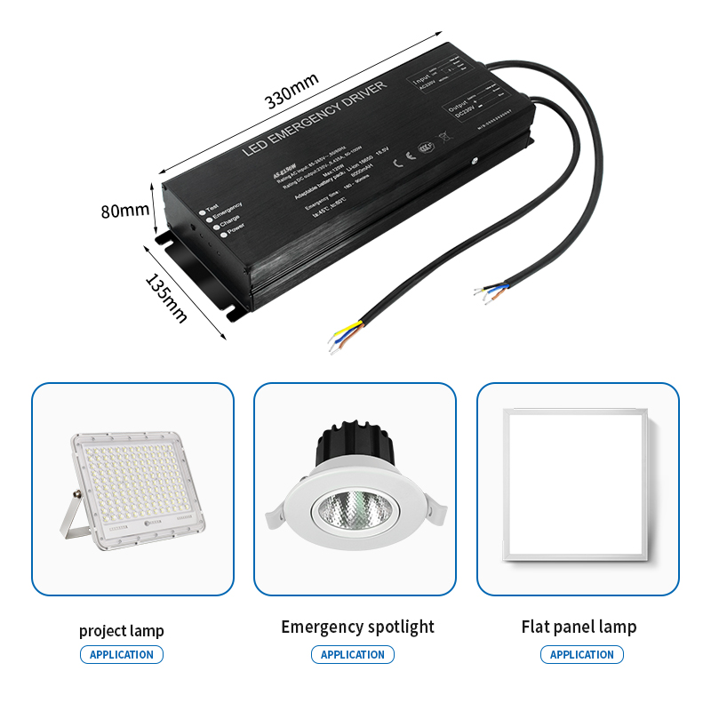 The AS-E150W emergency lighting power supply is a specially designed battery kit for 100-300 watt LED high ceiling lights, tailored for public and industrial scenarios such as shopping malls, factories, stadiums, and large venues that require high-intensity lighting. In case of sudden power outages, it provides stable full-power emergency support to ensure the continuity of activities and safe evacuation of personnel. The product's power adaptability is extremely strong, supporting an input range of 85-265 volts AC and 50/60 hertz. It is compatible with most global power grid environments. In emergency mode, it provides a stable output of 230 volts DC, paired with a full-power LED power converter, ensuring that the LED high ceiling lights maintain their original brightness without any attenuation, fully meeting the requirements for large areas and high-intensity lighting. It is equipped with a 22.2-volt 18650 high-quality lithium-ion battery, with an emergency duration of up to 60-18…