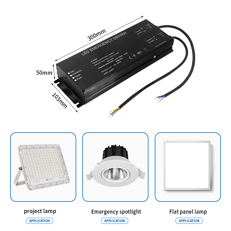 Product specification: Emergency Power : Full power 10-100W Power For : 10-100W LED light Input Voltage : AC85-265V Emergency Time : Approx 120 min Battery : 18.5V, 14400mAH, Li-ion battery Charge Time : ≤ 24H Operating Temp : -5℃~45℃ IP : IP30 Warranty : 3 YEAR Certificate : CE , RoHS Size: 360 x 105 x 50 mm Description : LED Emergency Light Module adopts special design , which can applicable to all kind of LED light (3-300W) under AC85-265V. It can ensure LED light work normal approx 120 min when power failure. Using high capacity and rechargeable Li-ion battery . The Emergency Inverter Kit come with 3-years warranty. LEDEmergency Kit ✔Easy to install and operate ✔Aluminum housing, good heat dissipation ✔Rechargeable , high capacity Li-ion battery ✔Annual and monthly self-check function ✔Overcharge and Over discharge protection ; Short circuit protection ;Overload protection; Fault connection protection. ✔3 YEAR warranty, IP30