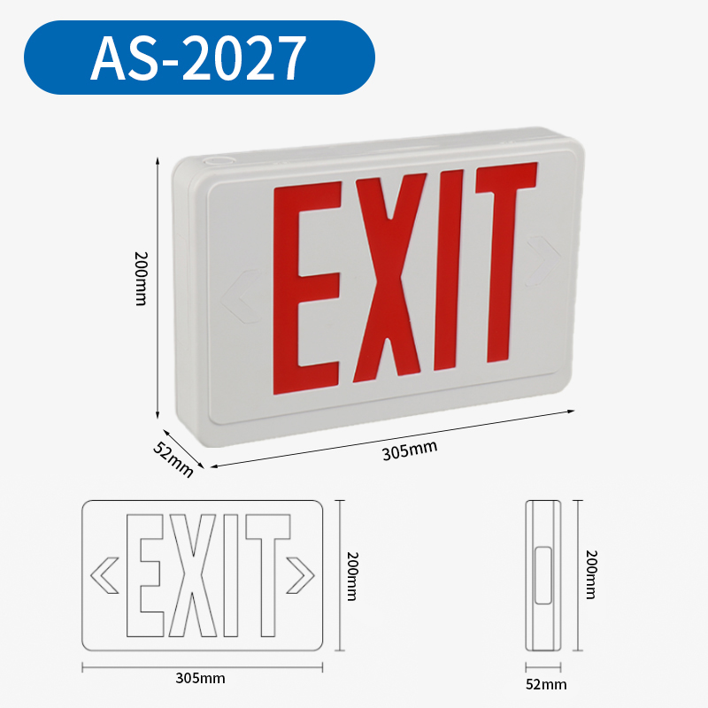 ABS LED Emergency Exit Sign With Battery Product Description ● Fire material - Injection-molded, flame-retardant, and high impact thermoplastic housing. 85V-265V AC universal voltage operation. This exit sign with Ultra-bright LEDs design is great for placing on doorways, isles, restaurants, office buildings, and warehouses. ● EASY INSTALLATION IN MINUTES - Universal mounting capabilities: Wall mount, end mount, and ceiling mount (canopy included), the led exit lights fits standard size junction boxes. Suitable for indoor damp location. n - Universal (top, end or back) mounting. The emergency exit signs fit standard size junction boxes. ● INTENSE PRESENCE - Bright red LEDs red letters with stroke are visible from up to 100 feet away. The led exit light fully assembled a single face with extra faceplate for easy field-conversion to double face. Pact thermoplastic housing. Ultra-bright integrated LED's provide maintenance-free emergency lighting. ● EMERGENCY POWER - The emergen…