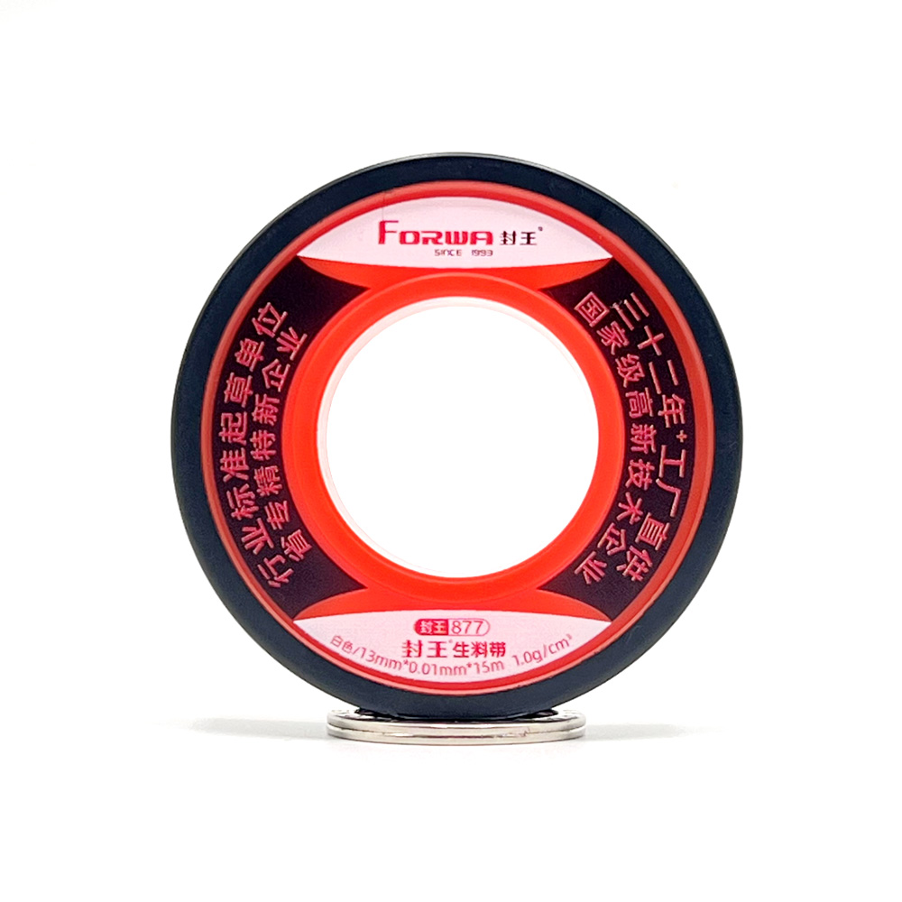 FORWA PTFE Tape — The Sealing Essential for Busy Renovation Seasons, Efficiently Meeting Rush Project Demands Band: FORWA Type: FW877 Material: PTFE Specification: 13mm*0.1mm*15m Density: 1.0g/cm³ Certification: ISO 9001 Quality Management System Certification, UK WRAS Water Regulatory Authority Certification, US UL Safety Certification, European SEDEX Ethical Trading Certification FORWA PTFE Tape is a patented high-tech product independently developed and manufactured by our company. Suitable for various threaded sealing applications, it features corrosion resistance, high-temperature tolerance, aging resistance, and excellent sealing performance. Available in multiple specifications, Fengwang Raw Material Tape caters to diverse sealing requirements by offering tailored options for different applications, meeting the varied needs of our customers. PRODUCT INFORMATION Product name FORWA 877 Material PTFE Color White Specification 13mm*0.1mm*15m Density 0.6g/cm³ Te…