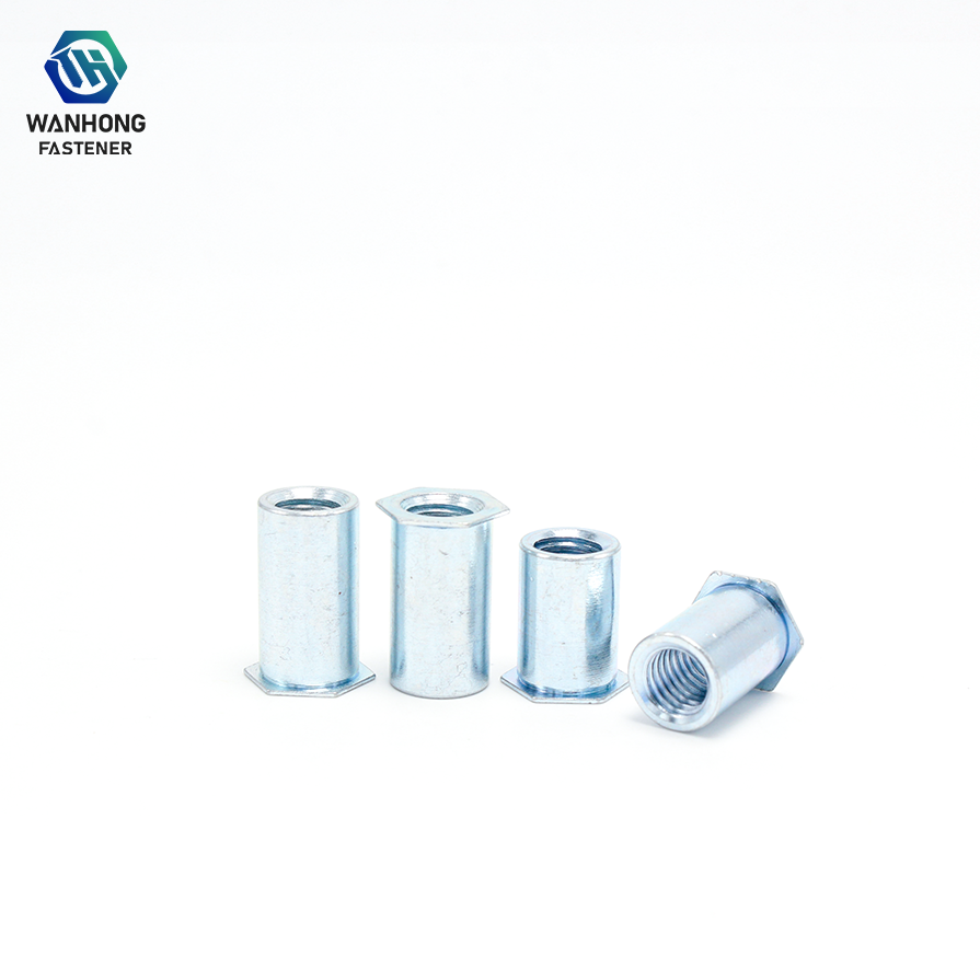The through-hole flat head hexagonal rivet nut is a high-quality fastening component specially designed for through-hole connection scenarios. It is made of high-strength metal and treated with galvanization on the surface, featuring excellent corrosion resistance and mechanical strength. Its main body is hexagonal, with a flat head and a through-hole structure inside. It can be quickly embedded into the workpiece through riveting technology, forming a stable and through internal thread connection channel. Functionally, it effectively overcomes the limitations of traditional connection methods in through-hole environments, providing a reliable threaded connection solution for the through-hole parts of thin plates, pipes and other components, ensuring that the connection parts have excellent load transmission capacity and anti-loosening performance. The installation process is highly efficient and convenient. It can be completed with professional riveting equipment without complex pr…