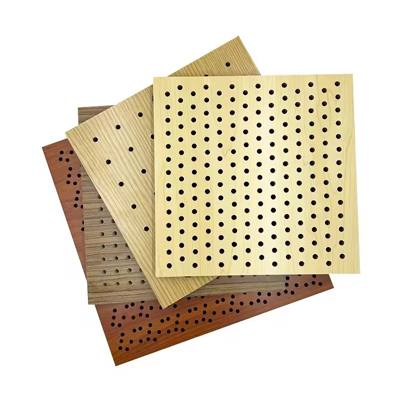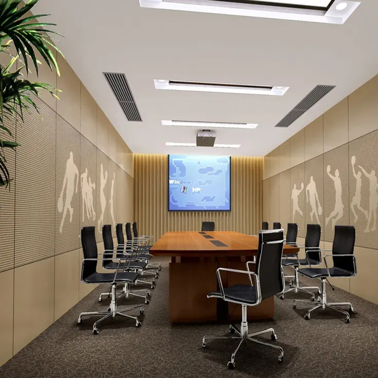 Product Name: Perforated wood acoustic panels Standard Size: Length: 605/1210mm; Width:605mm; Thickness: 12/15/18mm Wood Surface: Melamine, natural veneer, fireproof board, spray paint, metal surface, technical veneer, leather surface, etc. Basic Material: MDF board, environmental protection board, flame retardant board, black MgO board, white MgO board, red MgO board, carbon fiber board, solid wood board etc. Structure: Holes are made from high-density basic board, and sound- absorbing black felt is attached to the back of the board. Application Place: Gymnasium, Meeting room, Multi-Function hall, Grand theater, Lecture hall, home theater,Concert hall, hotel etc. Conference Room Perforated Acoustic Panels are an innovative solution for creating a balanced and acoustically optimized environment in any meeting or conference space. These acoustic panels combine the natural beauty of wood with advanced sound absorption technology to enhance both the aesthetics and functionality of yo…