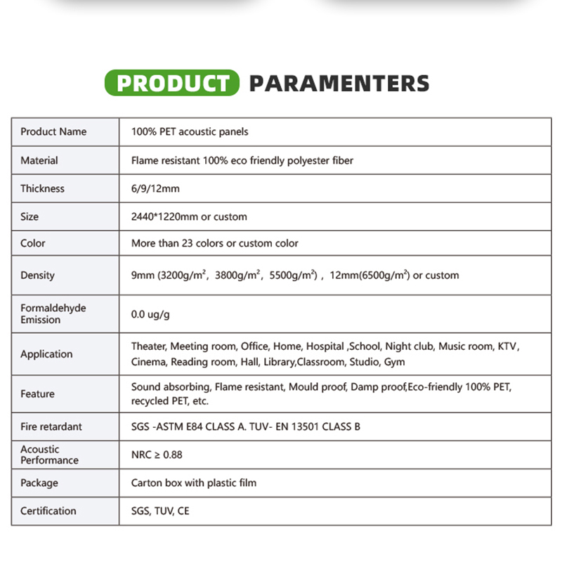 The acoustic polyester panels for Lounge Walls offer a perfect balance of style, comfort, and performance for modern interior spaces. Made from high-density recycled PET felt, these polyester fiber acoustic board provide exceptional sound absorption by minimizing echo and reducing ambient noise, creating a peaceful and inviting lounge environment. Each panel can be fully customized in color, pattern, size, and thickness, allowing designers to craft unique wall features that match any aesthetic—from minimalist and elegant to bold and artistic.Lightweight, durable, and easy to install, the polyester acoustic panels maintain their shape over time and resist moisture, fading, and deformation. Their soft texture adds warmth to lounge areas, while their excellent fire-safe and eco-friendly properties make them suitable for residential, commercial, and hospitality settings. Whether you want to create a feature wall, enhance acoustic performance, or elevate the overall ambiance, Customized P…