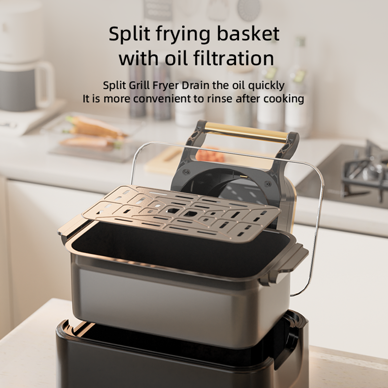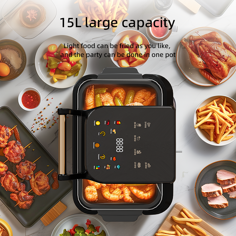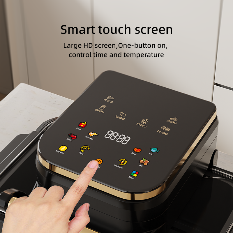 Powerful 12L Capacity Air Fryer with Smart Color Touchscreen Experience the ultimate in healthy, convenient cooking with our high-capacity air fryer. Designed for families and entertaining, it combines a powerful 1700W motor with an intuitive color touchscreen and six one-touch presets for perfect results every time. Product Specifications: Power: 110V-127V / 220-240V, 50Hz/60Hz, 1700W Capacity: 12L with non-stick rack Standard Colors: Black, White, Grey with Gold Trimming Control: High-grade color touch panel Temperature Range: 80-200°C Timer Range: 0-120 minutes Key Advantages: 360° Rapid Hot Air Circulation: Ensures food is cooked evenly—crispy on the outside, juicy on the inside—using less time and energy. Smart & Simple Operation: The vibrant LED digital display offers 6 pre-set menus, taking the guesswork out of cooking your favorite dishes. Healthier Frying: Enjoy the taste of fried food with up to 85% less fat, thanks to oil-free air frying technology.…