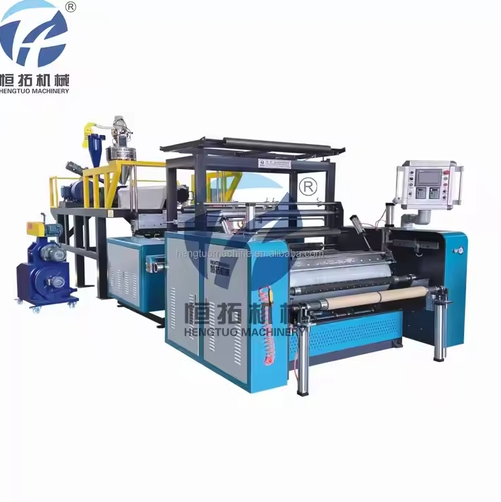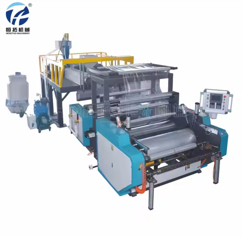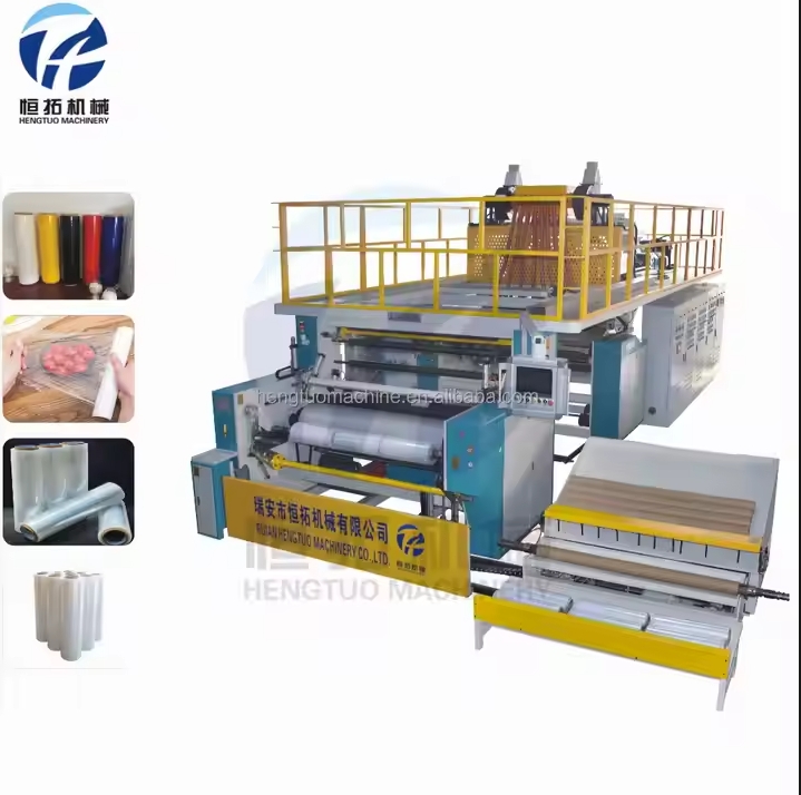 Product Description HT-1000 Double Extruder PE Plastic Stretch Film Cling Film Making Machine CE Certificate can produce stretch film and cling film use This machine uses LDPE and LLDPE to produce casting stretch film(could produce one-side sticky film and the other side normal), adopting double screws and two hoppers. This co-extrusion stretch film is widely used in packing area for architecture, auto parts, hardware parts,etc. Characteristics 1. Screw and cylinder are all made of 38 CrMoALA after nitrogen treatment, which has an advantage of corrosion resistance and endurance, etc. 2. The cooling device adopts cycle water cooling which provide the best transparent effect of the stretch film 3. Rewinder adopts with friction-rewinding-type, with cutter device for edge correcting. Company Information RUIAN HENGTUO MACHINERY CO.,LTD. located in Ruian City, Zhejiang Province,China.is an innovative enterprise which integrates packaging machine…