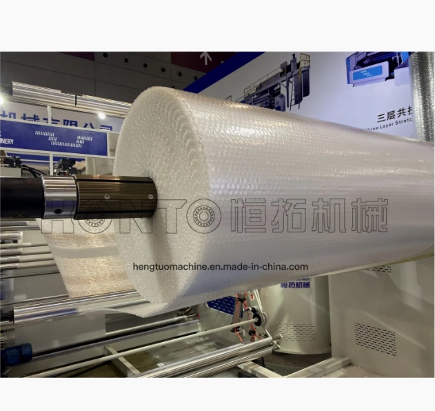 Product Description HT-1000/1200/1500/1800/2000... Polythylene Air Bubble Film Making Machine for bubble wrapp film, plastic film sheet For producing 2 layer PE bubble film .3 layer PE bubble film ,4 layer bubbewrapp film (compounding one layer of Craft paper/Aluminized film/Pearlized film) Usage PE Air bubble film making machine adopts once-through shaping technique, thus has high efficiency and excellent product quality. This machine set has such features as scientific and reasonable structure design, smooth and reliable running and convenient operation and maintenance. Polyethylene air-cushion film (also called polyethylene bubble film), which is divided into two kind: ordinary polyethylene air-cushion film and composite polyethylene air-cushion film, is a kind of packing material which has been widely used at present. It not only has good cushioning effect, shock resistance and heat-sealing performance, but also has such advantages as good co…