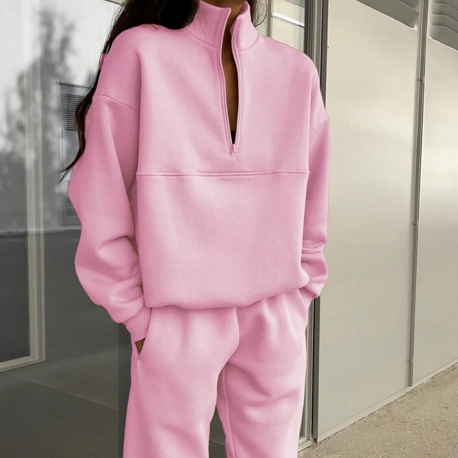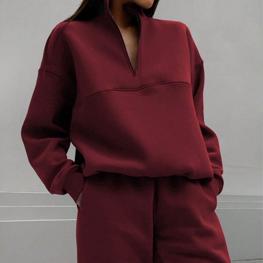 This women's hoodie tracksuit set focuses on comfort and casualness, accurately meeting the daily dressing needs of modern women. It includes a two-piece set of hoodie and sweatpants, with a simple and elegant shape yet a sense of fashion. The classic hoodie is matched with high-waisted cuffed sweatpants, and the overall silhouette is relaxed and moderate, which can not only modify the waist and hip lines, but also cover body defects, creating a casual and comfortable body beauty. The drawstring design of the hoodie can be freely adjusted to increase dressing flexibility; the invisible side pockets of the sweatpants combine decoration and practicality, making it convenient to store small items. The whole set of clothing does not require careful matching, and can easily handle various scenarios such as home relaxation, outdoor commuting, and fitness sports, making comfort and fashion seamlessly connected. Crafted from high-quality combed cotton fabric, it feels soft and skin-friendly,…