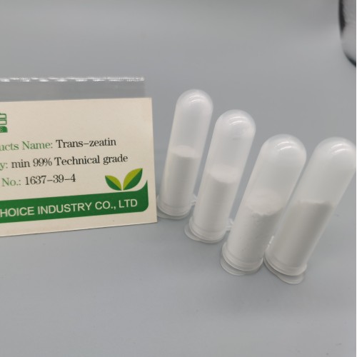 Cytokinin Trans-zeatin 99% Application Scenarios, Crops & Timing ---- Plant Growth regulator Plant Growth Regulator Trans-zeatin to work on Tomatoes: For cell division promotion, sprayed at the transplanting stage (5–7 days after transplanting) to accelerate root establishment, and at the early fruit-setting stage to increase fruit cell formation. For anti-senescence, applied at the late fruit development stage (when fruits start to ripen) to delay leaf yellowing, ensuring nutrients keep flowing to fruits. Plant Growth Regulator Trans-zeatin to work on Cucumbers: Used for cell division at the seedling stage (2–3 true leaf stage) to promote lateral root growth, and at the flowering stage to stimulate ovary cell division for higher fruit set. For anti-senescence, sprayed at the mid-harvest stage to keep leaves green, maintaining yield during the later harvest period. Plant Growth Regulator Trans-zeatin to work on…