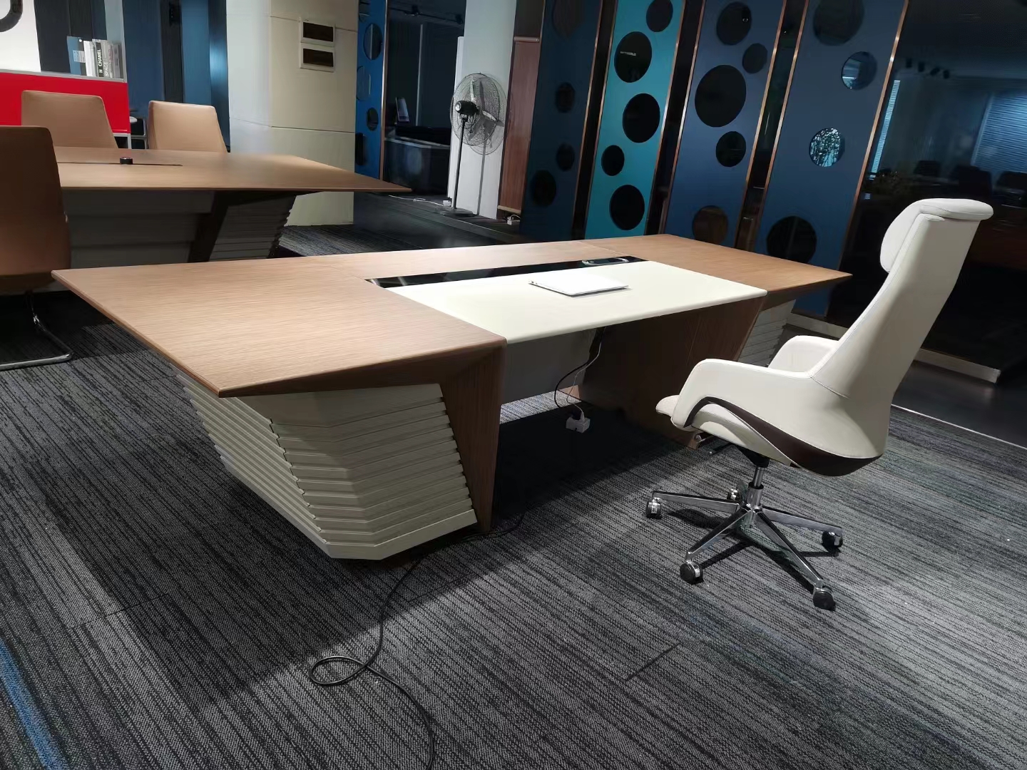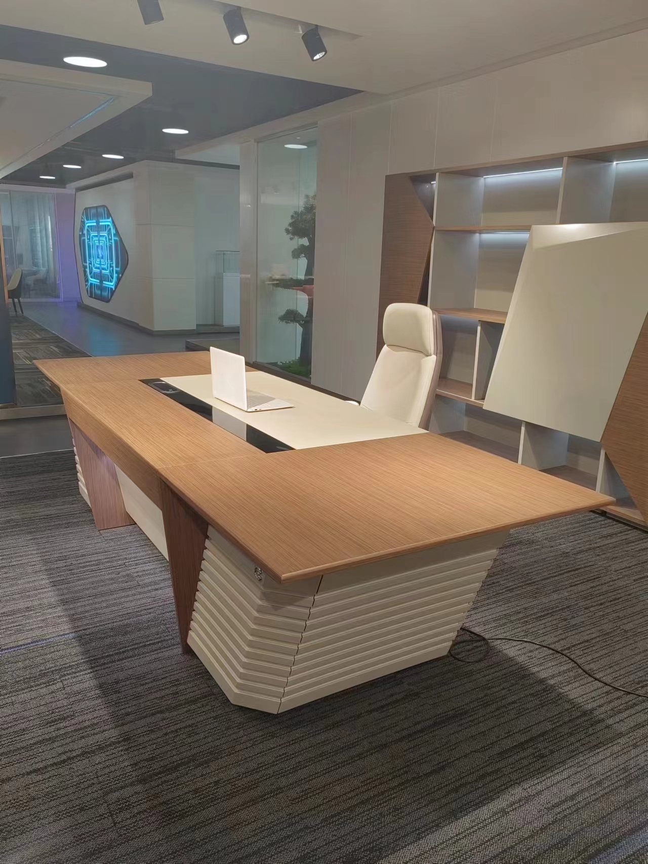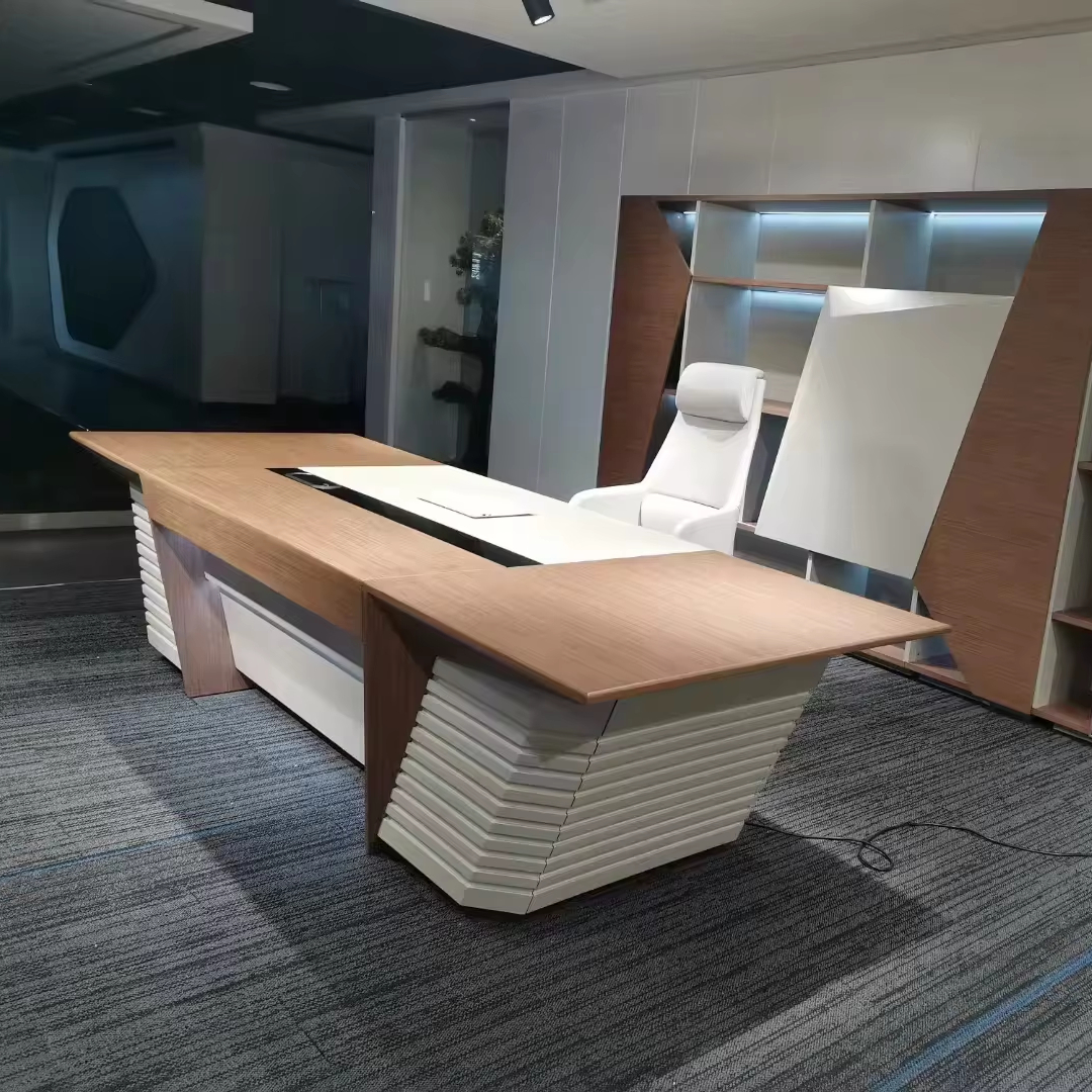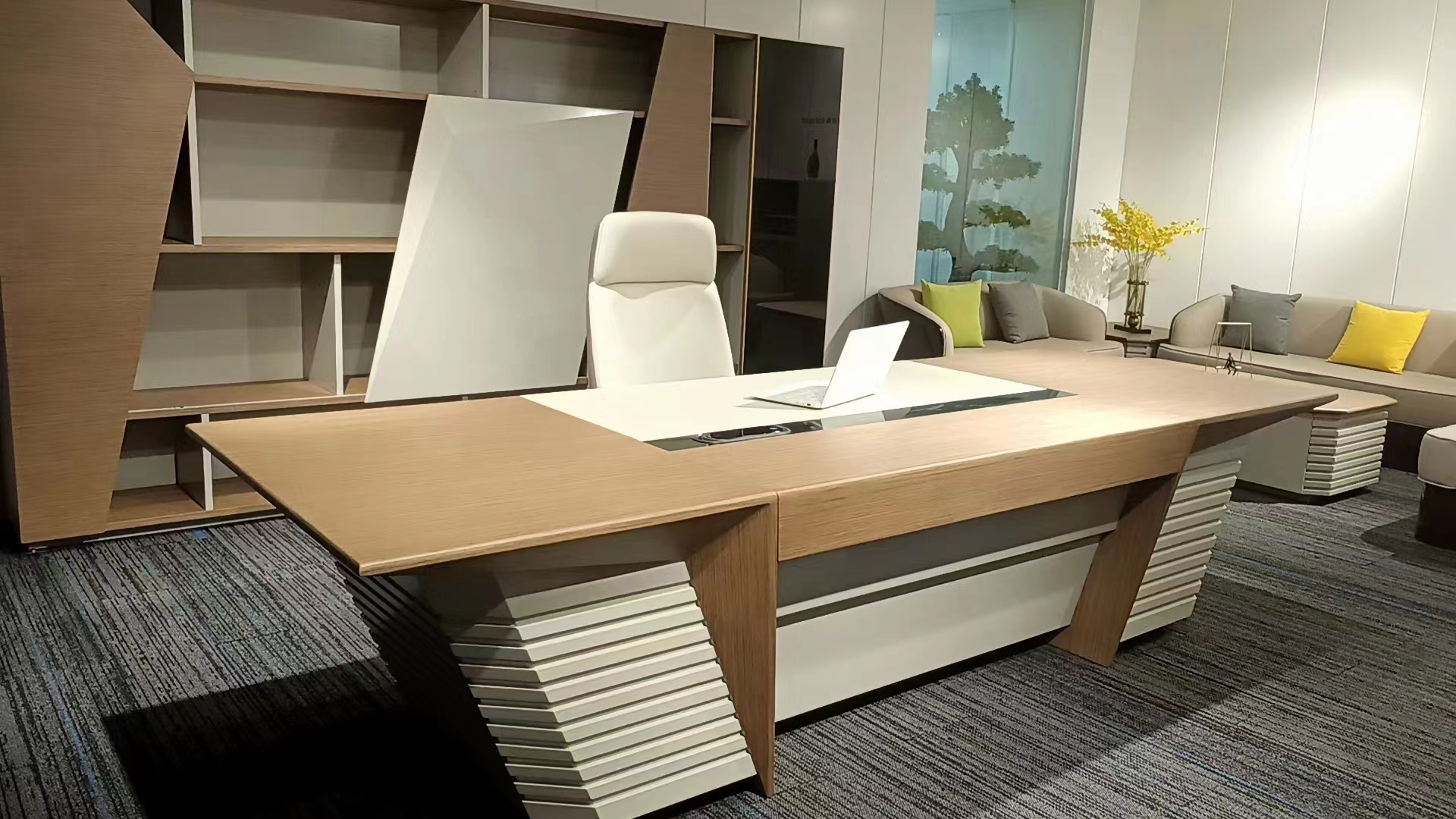 Elevate your bright, open creative or flexible workspace with this sleek, sculptural desk—where airy design meets workhorse functionality, crafting a hub that adapts seamlessly to your daily workflow. Its light-toned, expansive tabletop has room for whatever your day demands: fit dual monitors for deep strategic focus, spread out creative sketches and project docs for collaborative reviews, or even host a quick 2-person brainstorm without feeling cramped. The distinctive angular base adds modern, eye-catching flair to the space—without taking up extra room or cluttering your open layout. Blending perfectly with bright, organized backdrops (like the built-in shelves and light decor here), this desk keeps your workspace feeling uncluttered and inspiring—ideal for creative professionals, agile team members, or anyone who needs a spot that shifts as smoothly between solo tasks and casual collaboration as they do.