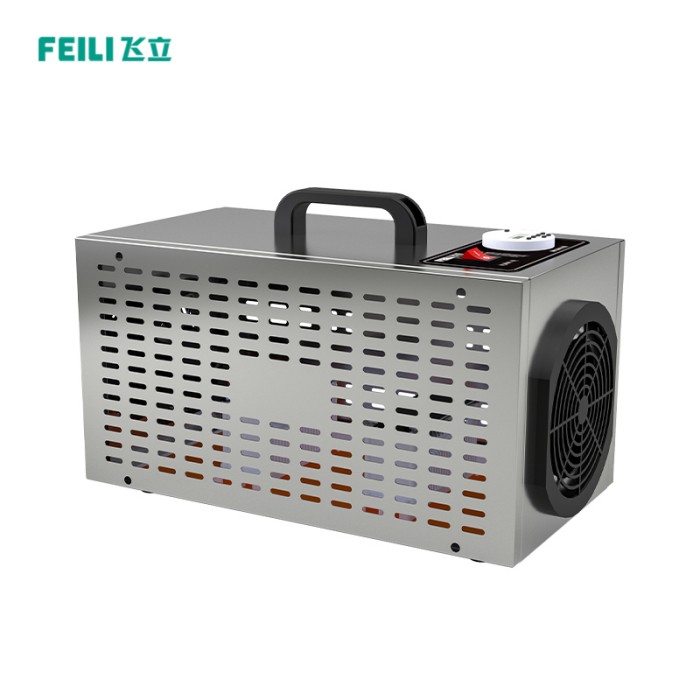 5g/h Ozone Generator for Air Sterilization & Odor Removal Ozone (O₃) is a powerful oxidizing agent that naturally purifies and disinfects the air. The Ozone Generator is specially designed for air treatment in commercial and industrial environments. It effectively eliminates airborne bacteria, viruses, mold, and unpleasant odors — without chemicals. Ideal for spaces that require high hygiene standards and fresh, clean air. Technical Specifications Parameter Details Ozone Output 5g per hour (±5% error) Ozone Concentration 20–25 mg/m³ Coverage Area Up to 150 m² (1,615 sq ft) Power Supply 110V / 220V, 50/60 Hz Power Consumption 55W Ozone Technology Corona Discharge Housing Material 304 Stainless Steel Ozone Plate Imported Ceramic Plate (5,000+ hours lifespan) Additional Features Built-in Timer & Ozone Monitor Product Dimensions 320 × 220 × 140 mm Package Dimensions 490 × 290 × 320 mm How to Use Placement: Install in an empty room or spac…