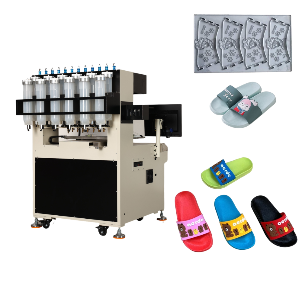 PVC Rubber making machine 1.As a professional manufacturer ,you can get best quality product with competitive price. 2.We have rich experience team, will Offer our best service to every customer. Effective OEM&ODM service. 3.we have strict quality control system,also every piece of our goods will be full inspection before shipping,so don't worry about our product quality. The Soft PVC Shoe Upper Making Machine is a dispensing equipment designed for producing slipper uppers, sandal straps, and casual shoe decorations. Slipper Upper Making Machine is mainly used for soft PVC material shoe uppers and is widely applied in the PVC shoe upper manufacturing industry. Technical Specifications 1:Model: WD 600V-12B ( use computer for programming), WD600E-12B ( use teach box for programming) 2:Suit material: liquid PVC 3:Color:12 4:Program:8 5:Running distance: X:580mm, Y:420mm, Z:45mm 6:Working tabel size: X: 640mm, Y:430mm 7:Servo system: AC servo motor 8:Transmission:…