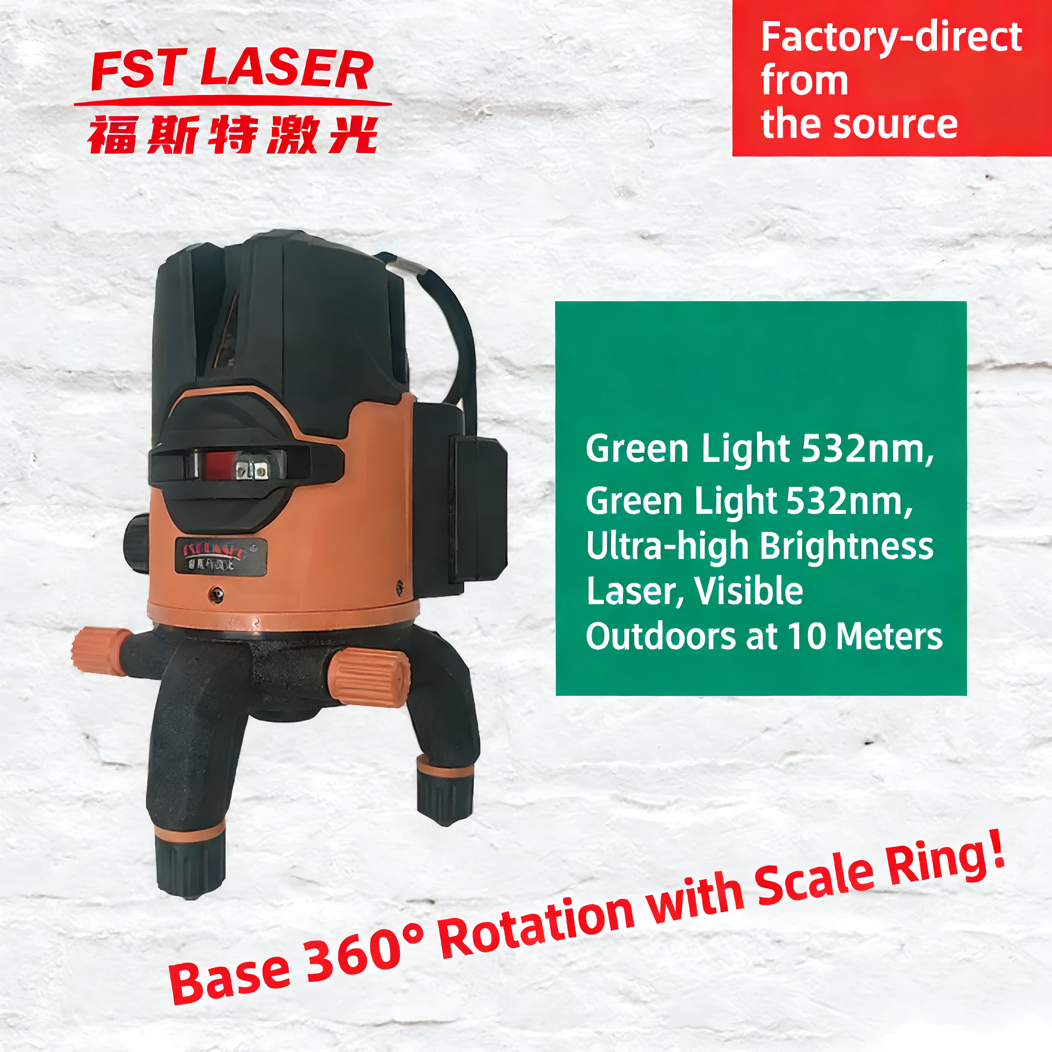 1. Level meter 2. Machine protection box 3. Charger (5V 1A) 4. 2 lithium batteries (marked capacity: 4800mAh/piece) Highlight: A level meter suitable for outdoor use. Designed and manufactured to meet users' engineering needs for outdoor wall building, concrete mold installation, and balcony installation. Function: 1. High brightness (measured under midday sun, the line can be seen from 5 meters away, and a faint line can be seen from 10 meters away) 2. Strobe function. It allows the laser line to flash at ultra-high brightness and high frequency, enhancing outdoor performance. 3. Three-stage brightness adjustment (Note: Brightness can only be adjusted downwards, and adjusting upwards will restore the default startup brightness). This feature is designed to reduce light brightness when used indoors, making the lines clearer and preventing blurring caused by excessively high brightness that can be dazzling. 4. Diagonal line mode Features: 1. This model onl…