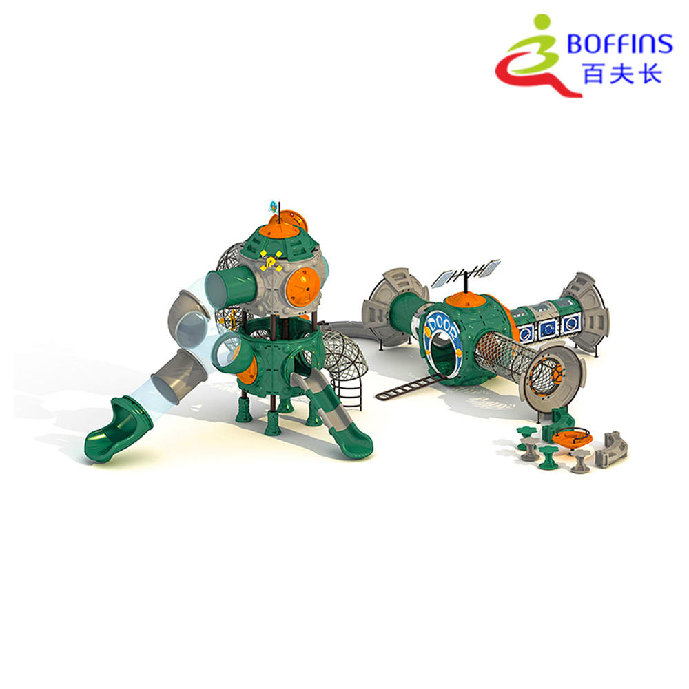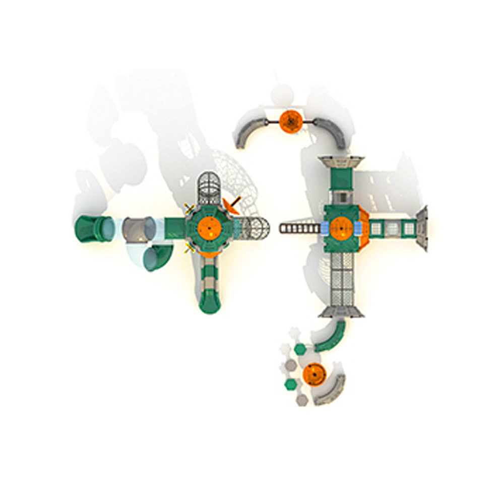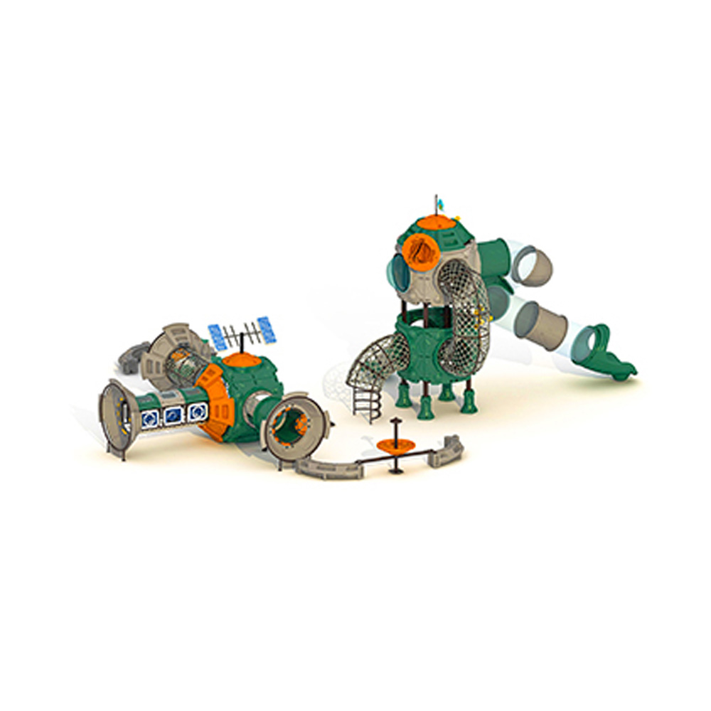 This Alien Outpost Link Kids Outdoor Playground Set is a whimsical, multi-component recreational solution tailored for children aged 4 to 12, blending physical activity with extraterrestrial imagination. Measuring 12801060490cm, its earthy green and orange color scheme (paired with pod-like play hubs and space-inspired accents) evokes the feel of an alien outpost, making it a fitting addition to community parks, family backyards, and elementary school recess areas. Built for long-lasting outdoor use, the set features a robust, weather-resistant frame paired with smooth, child-safe materials that withstand sun, light rain, and frequent play. Its design includes interconnected play pods, winding slides, netted climbing sections, and interactive details (like porthole-style openings) that encourage kids to pretend they’re exploring a distant alien habitat while they climb, slide, and interact. Safety is a core priority: all edges are rounded to minimize injury risks, climbing areas in…