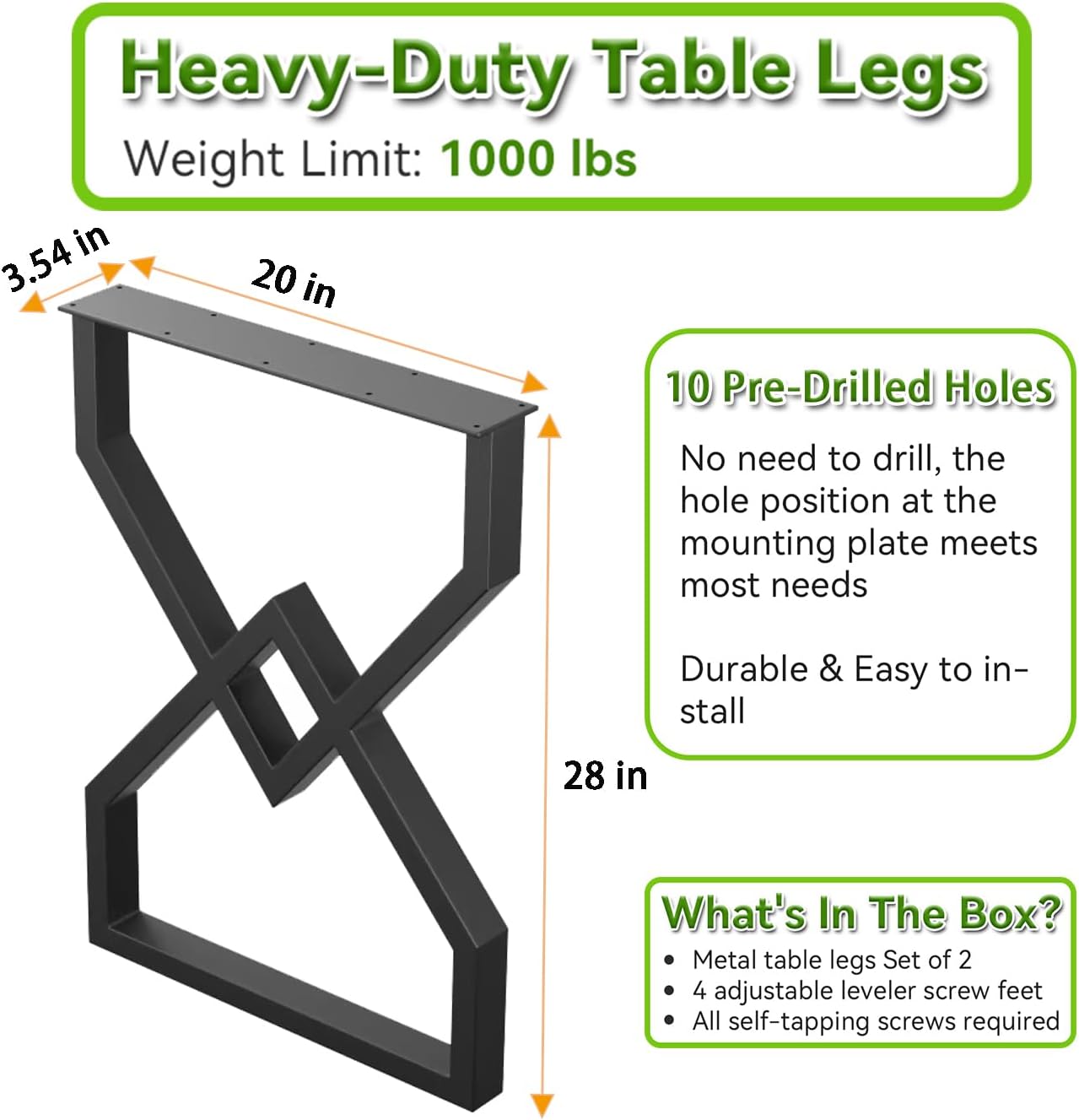 Iron RESISTANT TO CORROSION: Baked powder coating surface treatment helps create a uniform, durable finish, makes it resistant to chipping, peeling, and scratching, enabling our product to withstand rainy weather and to be suitable for outdoor use FOOT PAD UNDER TABLE LEGS: Food pad protects your wooden floor from any scratching, denting or scuffing damage. They keep the table from sliding and the adjustable feature help level the table to prevent wobbling HIGH LOADING CAPACITY: One leg holds approx. 1000LBs of weight. Could be assembled with a nightstand table or a workbench 10-MINUTE ASSEMBLING: Each of the table legs has mounting plate with pre-drilled holes. You only need to mount the screws with an electric drill. The whole process only takes 10 minutes AESTHETICALLY PLEASING: Matte dark-grey silky finish creates an industrial, modern and stylish look. A perfect pick for offering the elegant and clean design to your abode Our modern and stylish design metal table legs can comple…
