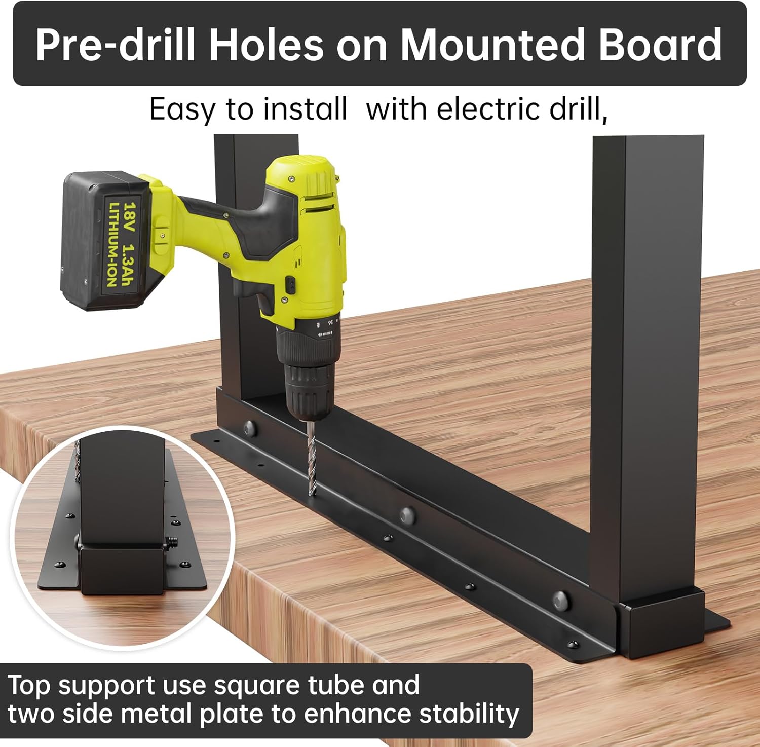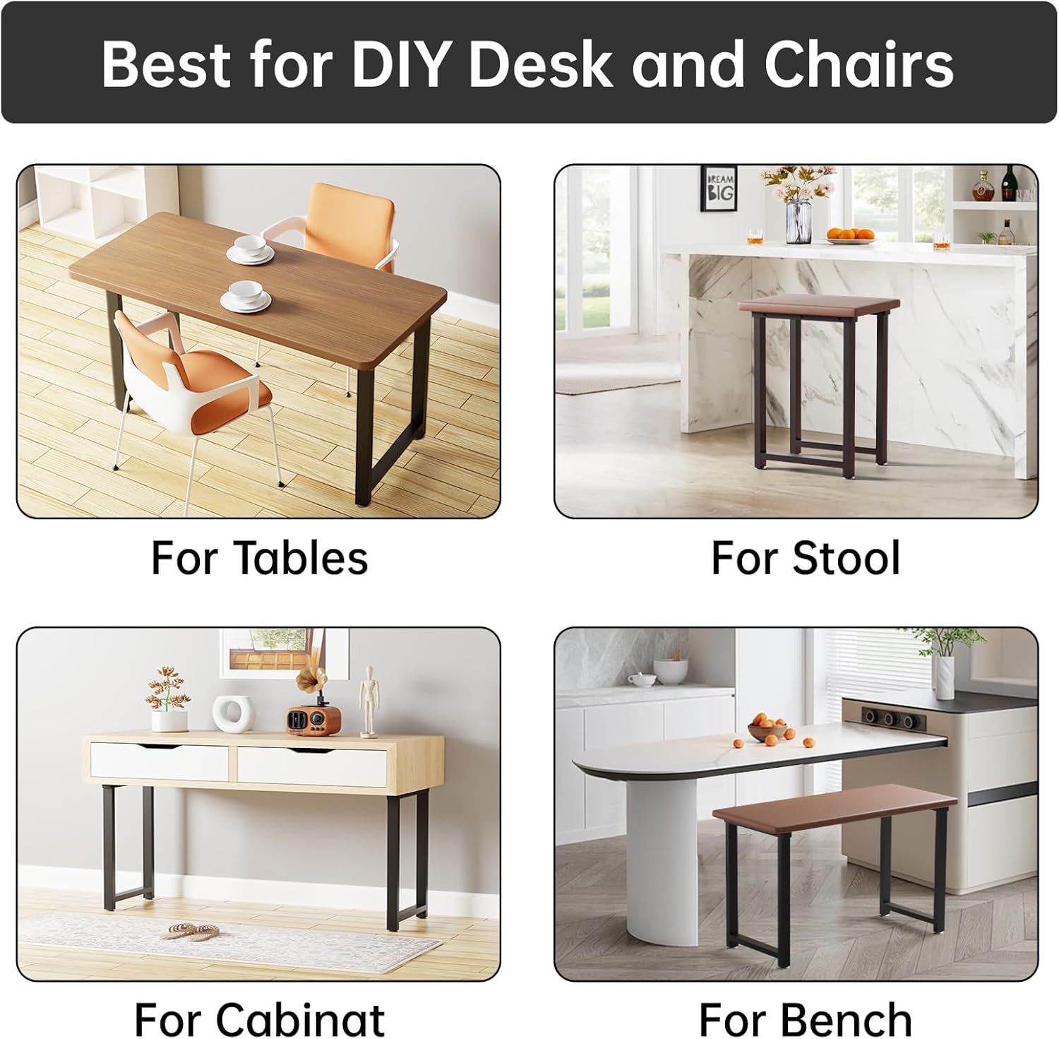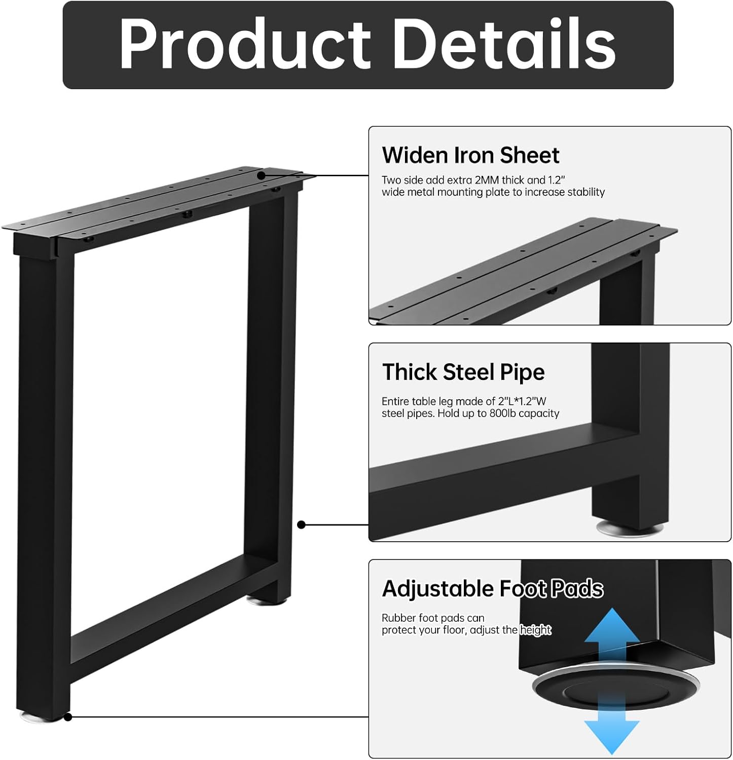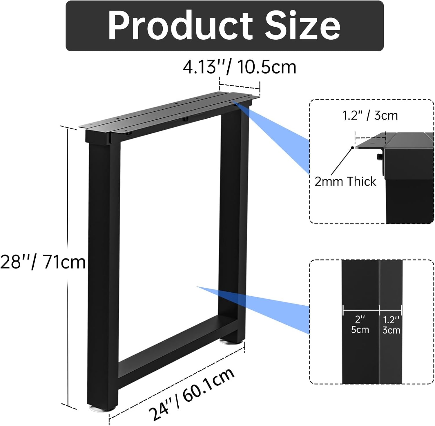 HEAVY DUTY METAL MATERIAL: Triangle-Shaped frame enlarge the bearing capacity and stability. Made of hard and durable iron, the maximum load weight of leg is about 1200lbs. It’s sturdy and suitable for most of home use. SIZE:Height 28 x Width 24.Note: This product is only suitable for wooden board desktop, but the package does not contain wooden board. PROTECTOR FLOOR: Four adjustment foot pads are included for use as an additional stabilizer for the shaking table.Also They are not loose and will not fall off and will ensure your desk legs do not scratch, mark, or otherwise damage your beautiful wooden, tile, and other delicate flooring. EASY TO INSTALL:Pre-drilled holes on the mounting plate make installation quick and easy.But the product is heavy,the assembly requires two people to collaborate. WIDELY USED:This Pipe legs are the perfect for custom coffee tables, side tables, console tables, TV stands, end tables, cocktail tables and more. Achieve a custom DIY feel with iron. It lo…