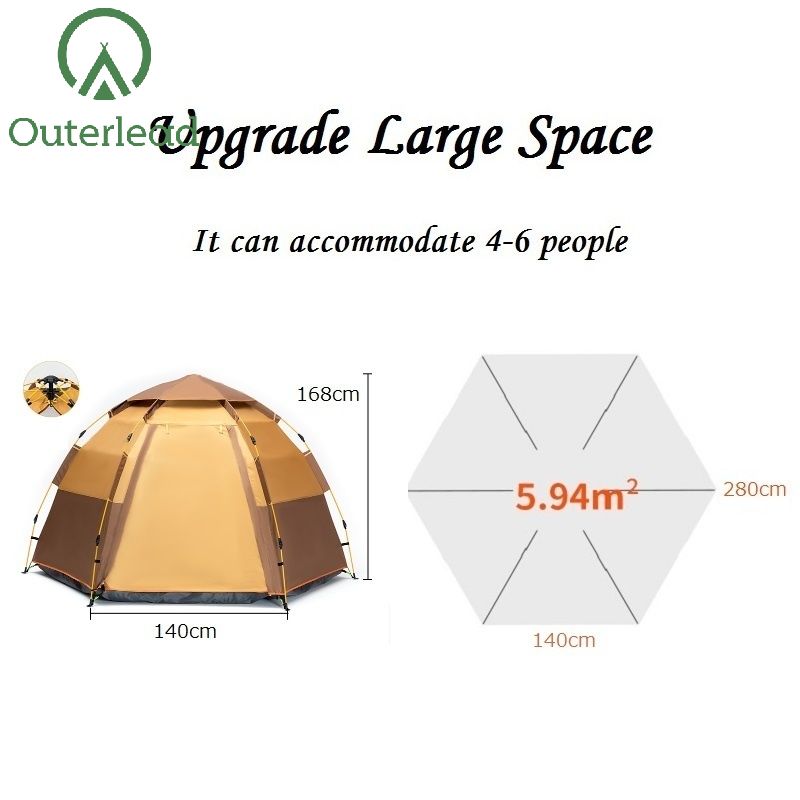 Looking for the perfect outdoor companion for your next camping trip? Look no further than Outerlead, your one-stop shop for high-quality outdoor camping products. From reactive outdoor tents to comfortable outdoor furniture chairs and relaxing outdoor hammock swing chairs, we have everything you need to make your outdoor adventure memorable. Our outdoor tent collection includes easy-to-set-up pop-up camping tents, large camping tents, hexagonal automatic tents, and instant tents, all designed to keep you and your family comfortable and dry during your outdoor excursions. Made with high-quality materials, including 190T polyester cloth coated with silver and PU2000mm, our tents are durable, waterproof, and built to last. Specifications: Item: 4-6 people hexagonal automatic tent Outer tent material: 190T polyester cloth coated with silver, PU2000mm Inner tent material: 190T breathable and non-permeable + B3 mesh Bottom material: 210D Oxford cloth, PU200…