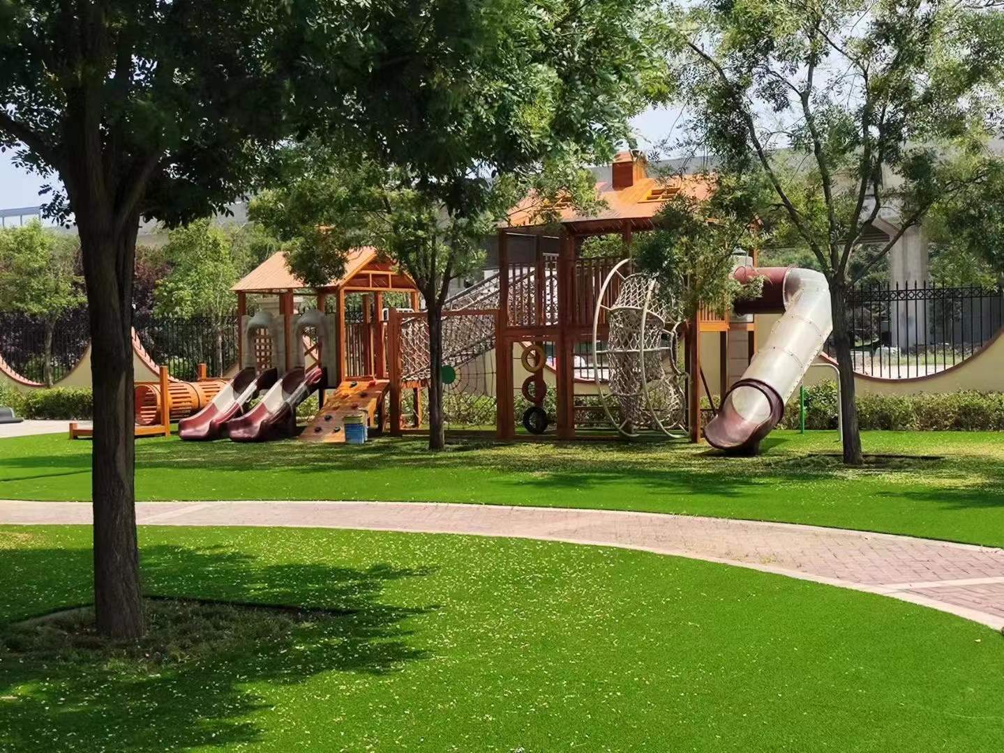 Product Description: Our artificial turf is carefully crafted using advanced production technology and high-quality raw materials. Its grass has a highly simulated appearance and natural color, which is almost the same as natural grass, and can bring you a visual enjoyment like being in a real lawn.In terms of durability, it performs excellently. The specially treated grass has excellent wear resistance. Even if it is subjected to high-intensity use for a long time, such as frequent sports activities and daily trampling, it can still maintain a good condition and is not easy to deform or fade.At the same time, this artificial turf is extremely easy to install, which greatly shortens the construction period and reduces costs. Maintenance is also easy and worry-free. There is no need to water, fertilize, or mow frequently like natural grass, saving you a lot of time and energy. Whether it is used for courtyard decoration, landscape construction, or various sports venues, it is an…
