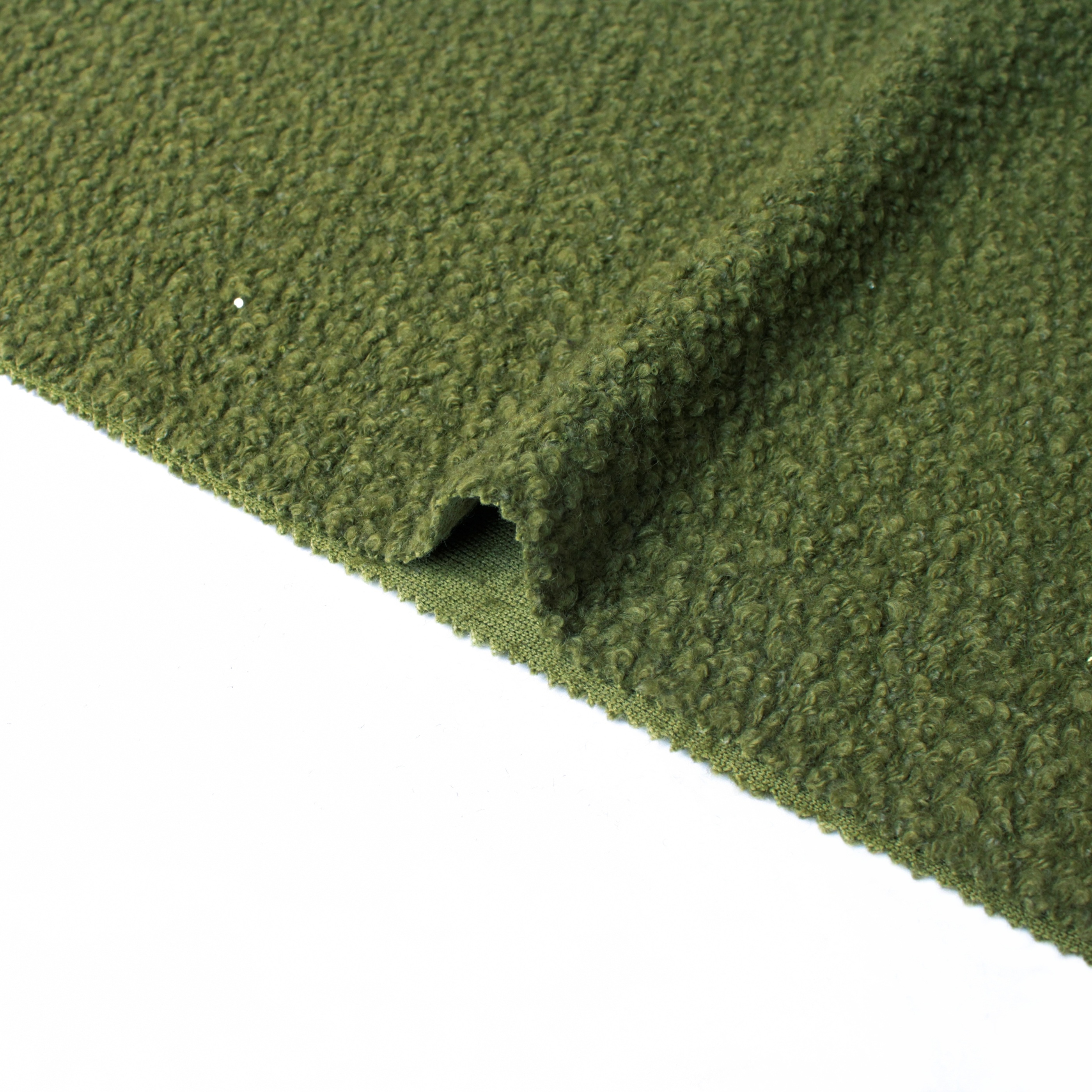 Please have a see about our mossy green wool blend knit fabric. This premium material combines the natural warmth of wool, the durability of polyester fabric, and the soft resilience of acrylic, creating a versatile textile perfect for elevated outwear.   With a weight of 490g/m², this mid-weight fabric offers excellent drape and structure, making it an ideal suit coat fabric for autumn and winter style. The  mini loop pattern provides high dimensional interest.   High quality wool knit fabric blend with superior softness   Mossy green hue with subtle sparkle details   Medium-weight (490g/m²)   Ideal for blazers, coats, skirts, and creative designs   As an established fabric manufacturer with decades of experience, we take pride in producing exceptional textiles for clients worldwide.    We welcome visitors to explore our sample room and discover our complete range of premium materials. We have built long-term partnerships with leading fashion brands and garment manufacturers acros…
